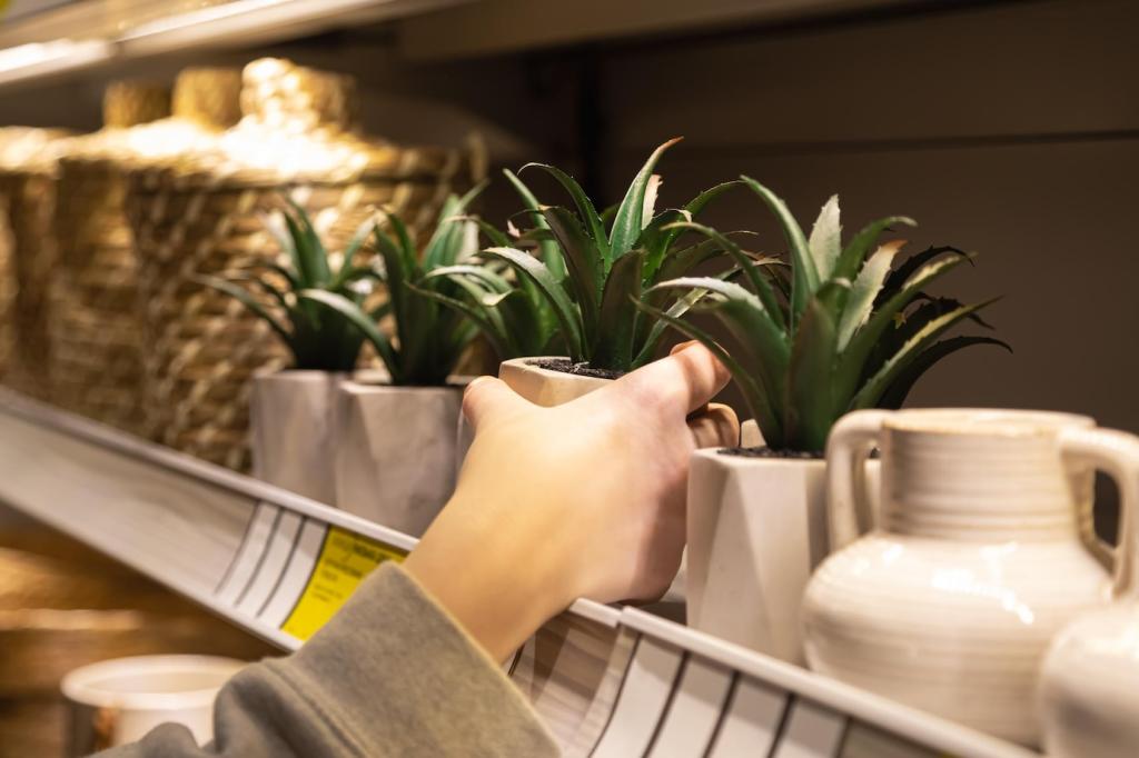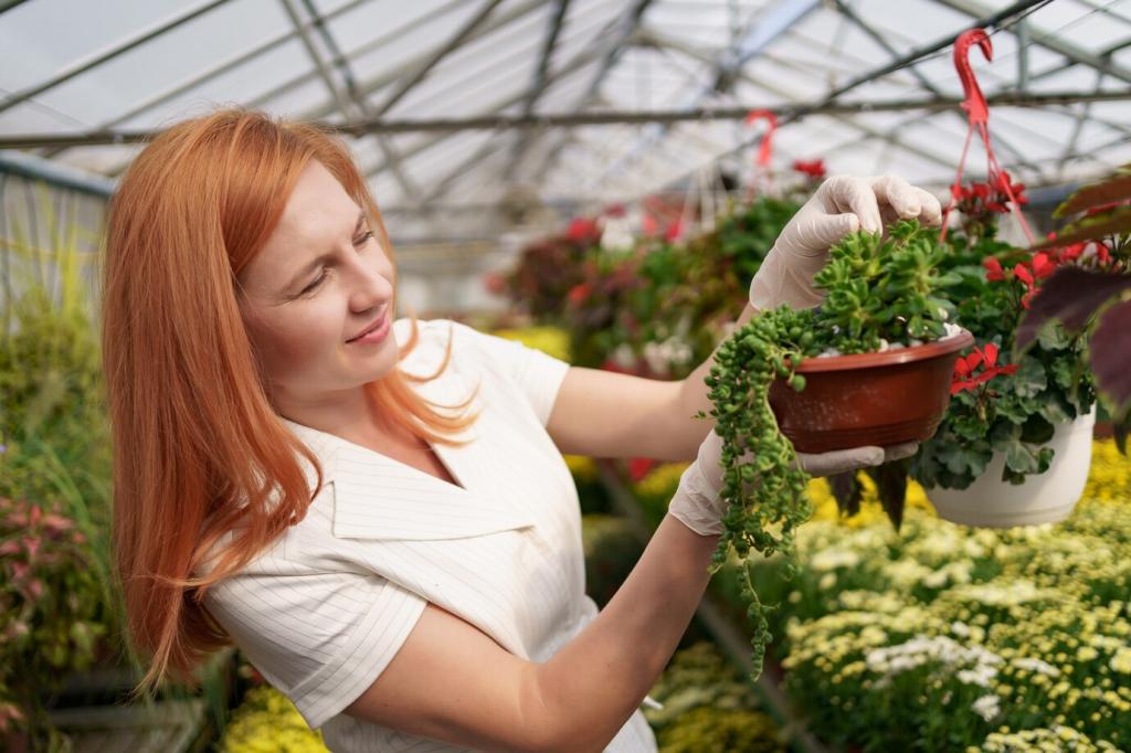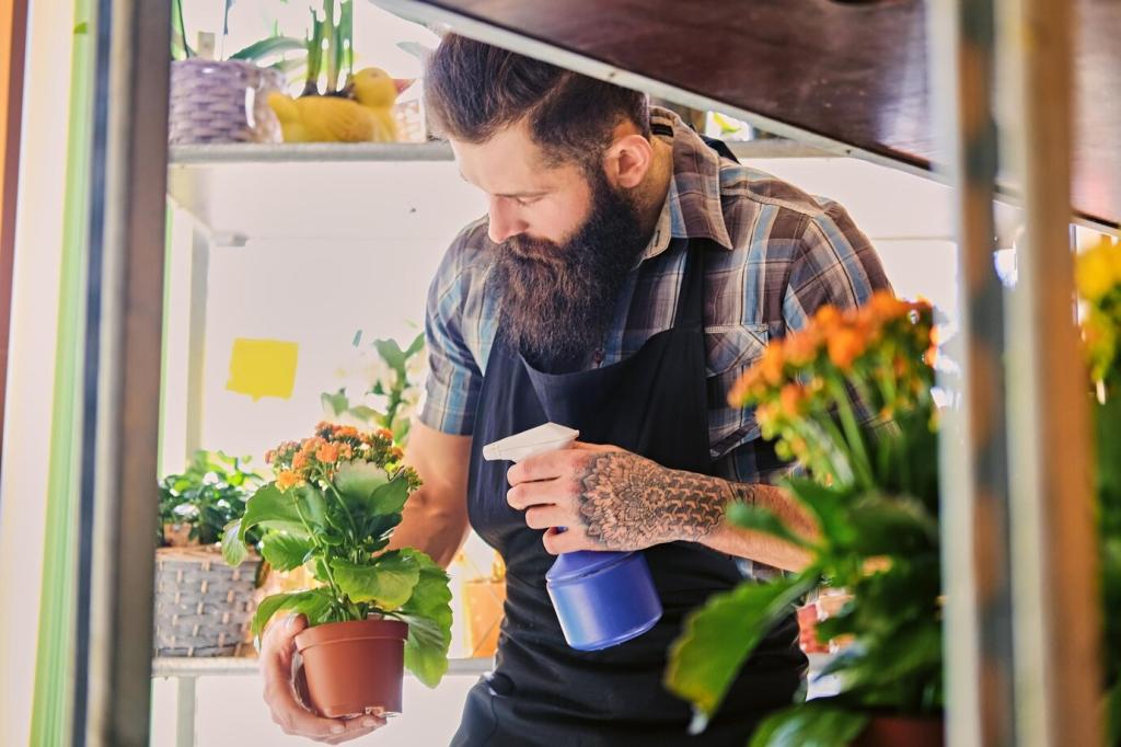 Ein dünner Tropfschlauch mit Zeitschaltuhr liefert präzise Mengen, spart Wasser und schützt Blätter. Lege die Linie pro Etage, setze Drosseln für sensible Pflanzen und prüfe wöchentlich Anschlüsse. Abonniere für unsere detaillierte Schritt-für-Schritt-Anleitung mit Stückliste.